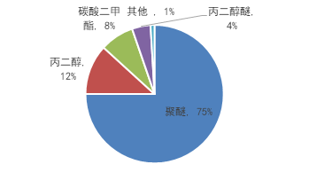 我国环氧丙烷下游主要为聚醚多元醇、丙二醇及其醚、碳酸二甲酯等领域,受建筑节能、新能源汽车轻量化及风电叶片芯材等需求拉动,主要下游聚醚需求持续释放。