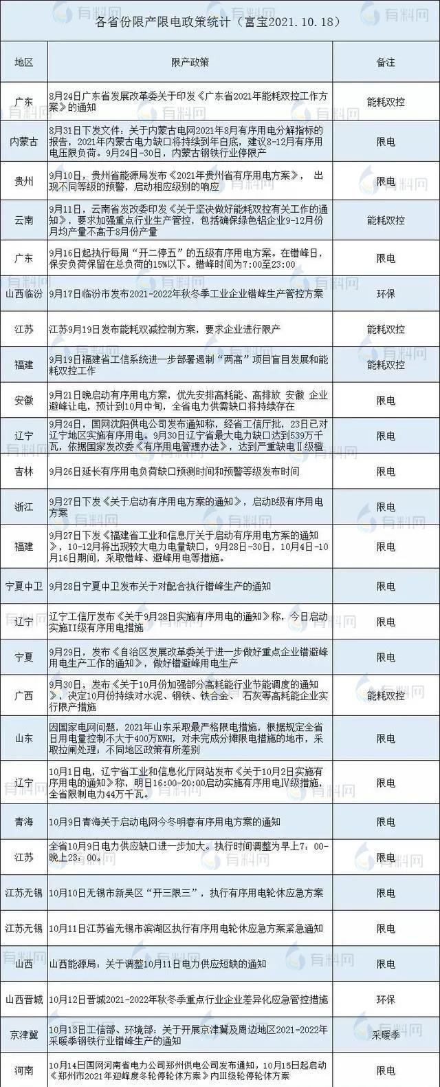 浙江省发展改革委印发《关于进一步完善我省分时电价政策有关事项的通知》,此次调整延长了用电尖峰时段,并拉大了峰谷分时电价的价差。此次将全年大工业电价尖峰时段由原来的2个小时增加至4小时,每年夏季7、8月份及冬季1、12月份,全天尖峰时段由原来的2个小时增加至6小时,提高大工业尖峰电价每千瓦时5.6分、高峰电价每千瓦时6分。实际上,8、9月份就有部分地区出台电价改革方案,例如贵州、广东等省份先后发布通知,执行分时电价政策,在平段电价基础上,上、下浮一定比例,形成高峰电价和低谷电价。目前限电最严的地区是河南,目前电炉已全部停产,长流程限产30%;长三角地区电力缺口仍有,但10月电炉厂并未大面积停产,以错峰生产为主。