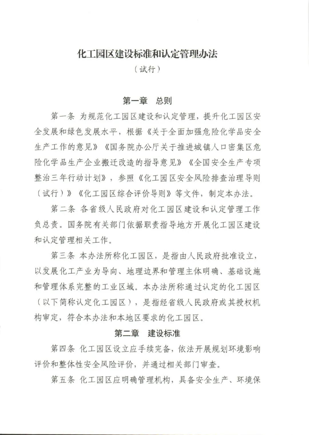 为规范化工园区建设和认定管理,提升化工园区安全发展和绿色发展水平,现将《化工园区建设标准和认定管理办法(试行)》印发给你们,请结合实际认真贯彻执行。