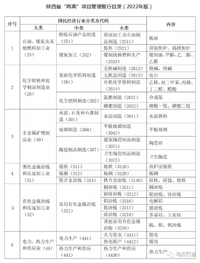 陕西省“两高”项目管理暂行目录(2022年版)