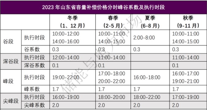 11月16日,国网山东电力公司会同山东电力交易中心发布《关于发布2023年容量补偿分时峰谷系数及执行时段的公告》,根据文件,国网山东省电力公司会同山东电力交易中心根据系统需求,完成2023年不同季节容量补偿分时峰谷系数K1、K2取值及执行时段测算,并引入深谷和尖峰系数及执行时段。