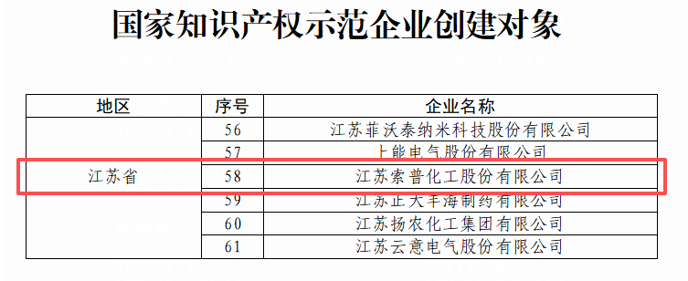 近日,国家知识产权局公示2025—2027年国家知识产权强国建设示范创建对象评审结果,索普股份凭借在知识产权创造、运用、保护与管理领域的卓越表现,经多轮严格评审,成功入选首批名单。