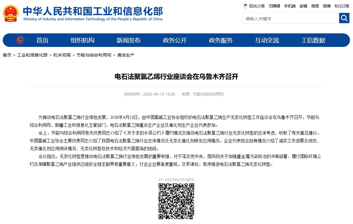 更新日期:2026-4-17 来源:工业和信息化部 编辑:氯碱网